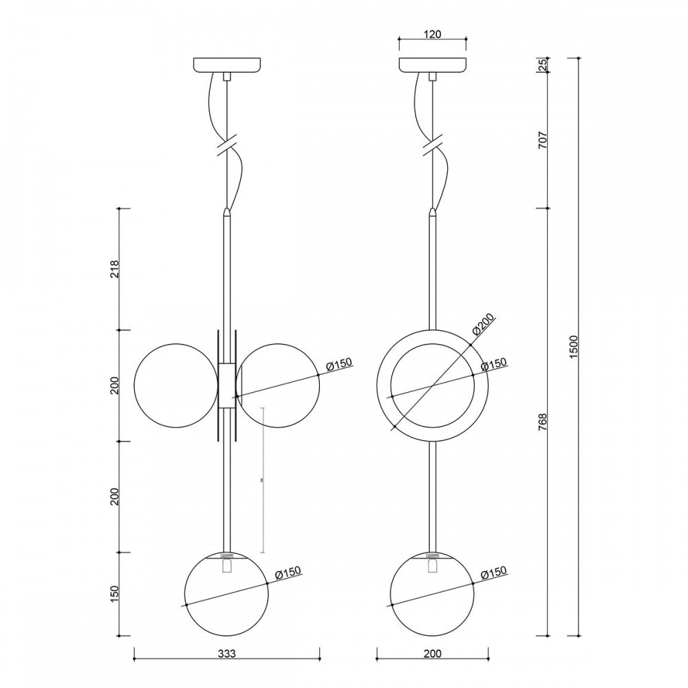 - plafonnier - longueur 150 cm - trois abat-jour en verre blanc dépoli de 15 cm de diamètre - cadre métallique et cadre de plafond laqués en blanc structurel - tresse en polyester blanc - câble à 2 fils 2 X 0,75mm2 - source lumineuse LED 3x7W incluse - max. 36W
