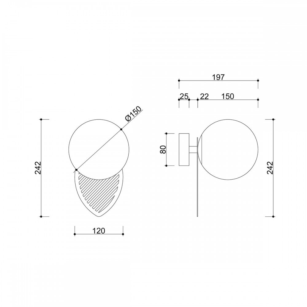 - applique murale / support mural - métal / laiton / verre - or / blanc - hauteur 24cm - largeur 15cm - profondeur 20cm - diffuseur en verre de 15cm de diamètre en blanc mat - support mural peint en blanc structurel - câble bifilaire 2 X 0.75mm2 - filetage G9 - max 12W