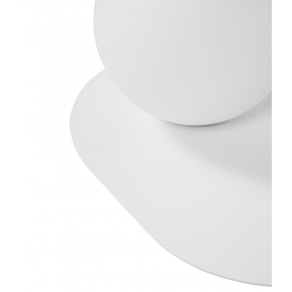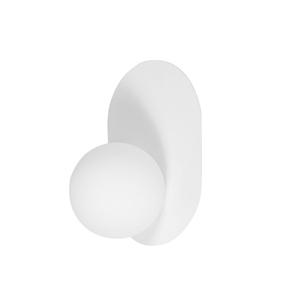 - applique murale / support mural - métal / verre - blanc / blanc - hauteur 30cm - largeur 21cm - profondeur 18cm - diffuseur en verre de 15cm de diamètre en blanc mat - support mural peint en blanc structurel - câble bifilaire 2 X 0.75mm2 - filetage G9 - max 12W