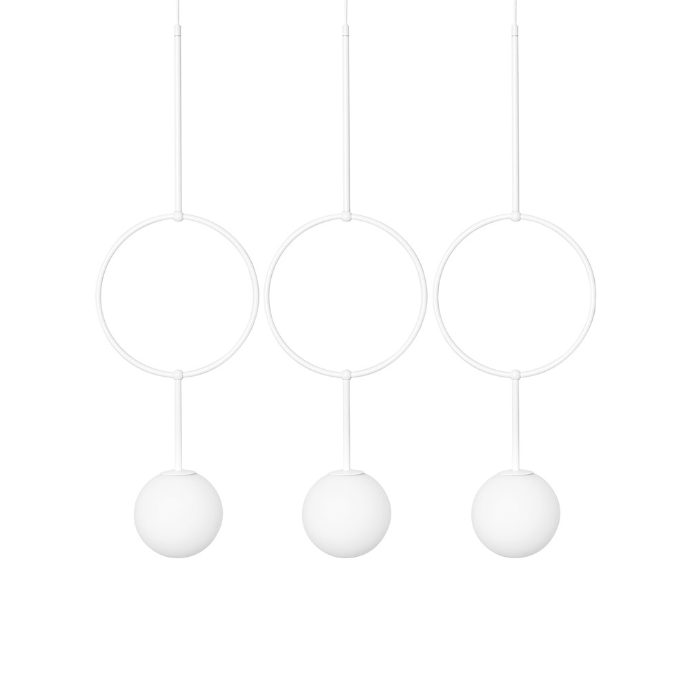 - lampe suspendue, plafonnier - blanc - matériau métal, verre - hauteur 160cm - largeur 90cm - profondeur 15cm - 3x abat-jour en verre blanc ⌀15cm - 3x cadre blanc avec anneau rond - câble tressé en polyester blanc - base en métal blanc 60cm - filetage G9 - max...