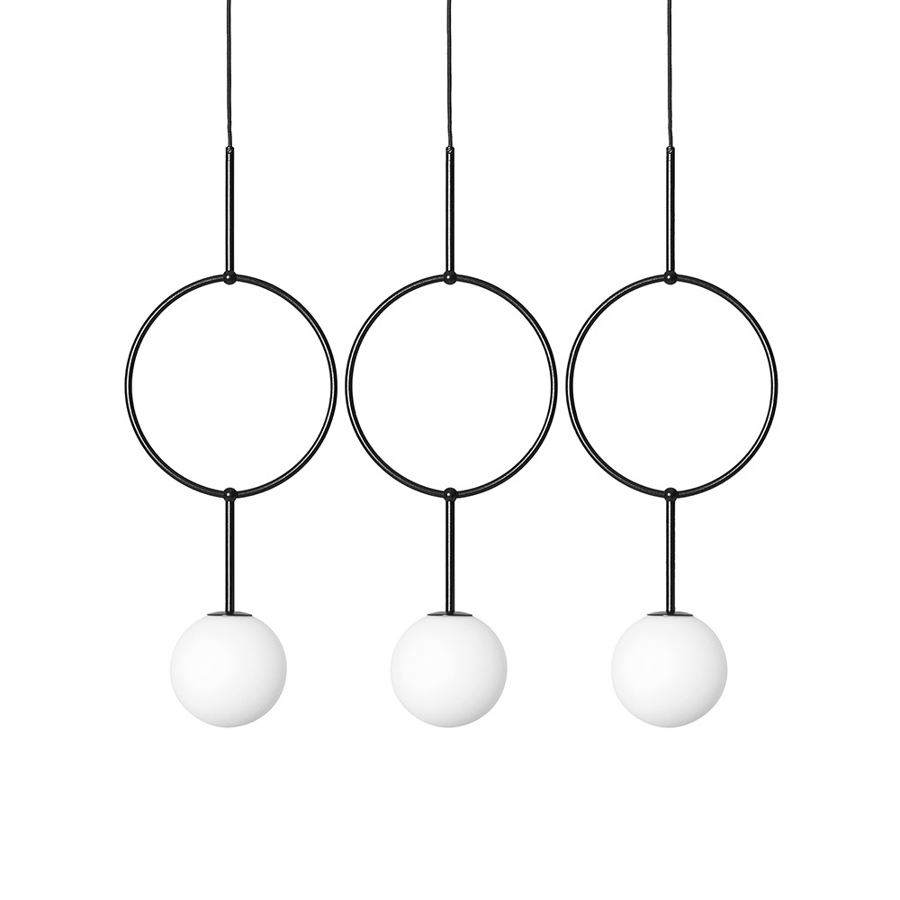 -lampe suspendue, plafonnier - noir, blanc - matériau métal, verre - hauteur 160cm - largeur 90cm - profondeur 15cm - 3x diffuseur en verre blanc ⌀15cm - 3x cadre noir avec anneau rond - câble tressé en polyester noir - support plafond ...