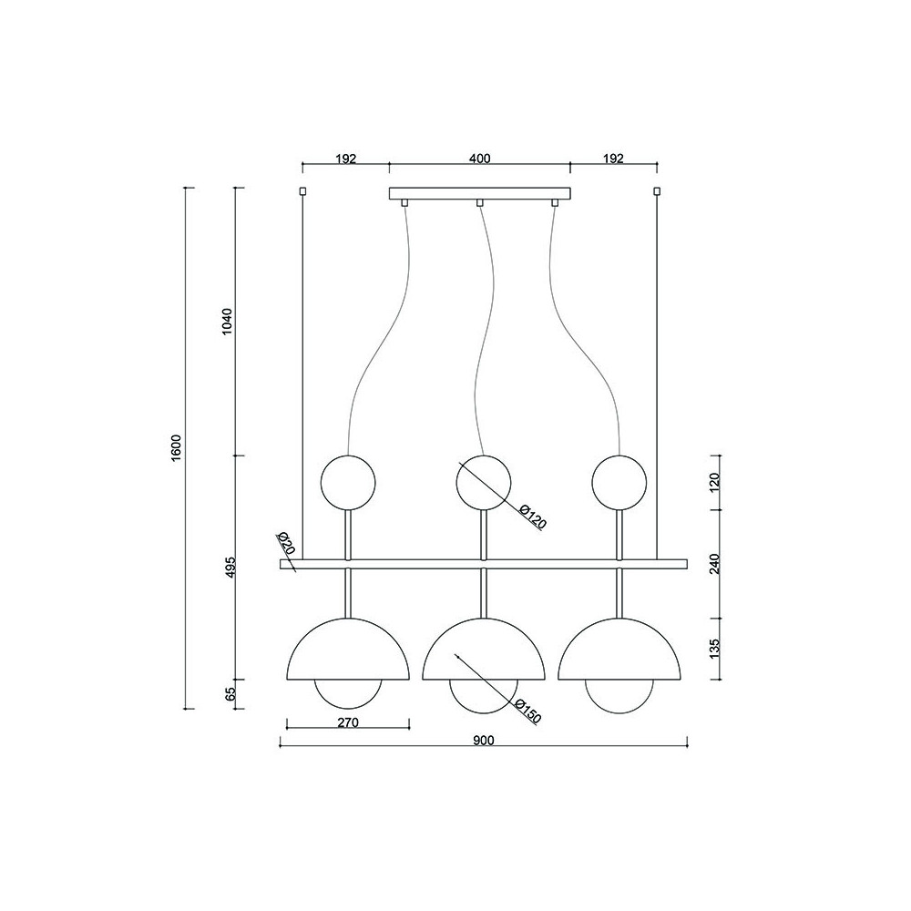 - plafonnier, lampe suspendue - noir (Jet Black RAL 9005 ) - matériau métal, verre, bois de frêne - longueur 90cm - largeur 27cm - hauteur 56cm - longueur totale 160cm - 3x diffuseur en verre blanc ⌀15cm - 3x globe en bois de frêne - cordon en polyester tressé noir - 2x cordon en acier -base en métal noir 40cm - filetage G9 - max 3x12W - IP20