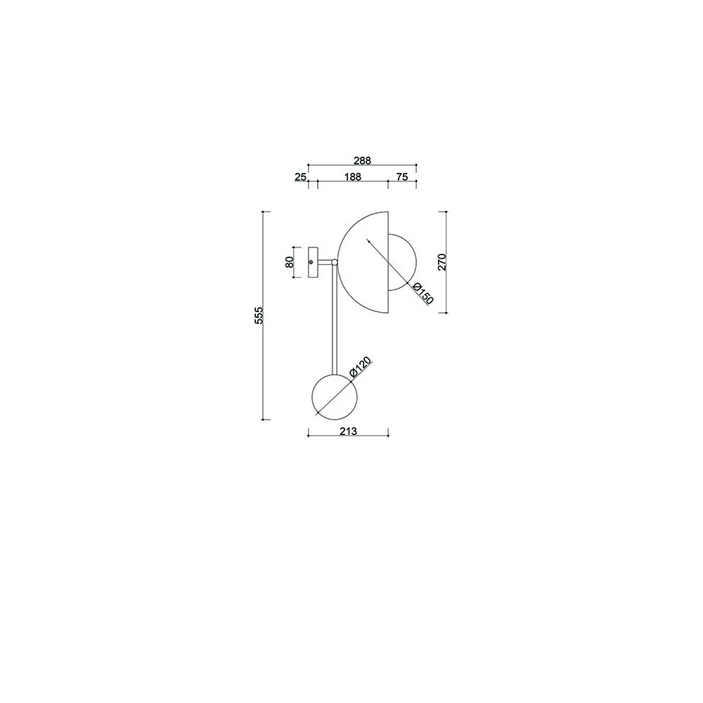 Les dimensions de l'applique sont de 55,5 × 27 × 28,8 cm, et l'ensemble est fixé au mur par une collerette métallique de 8 cm de diamètre. KELLO C est équipée d'une source lumineuse LED interchangeable sur un fil G9 (max 12W), ce qui permet d'adapter la température et l'intensité de la lumière aux besoins de l'espace.