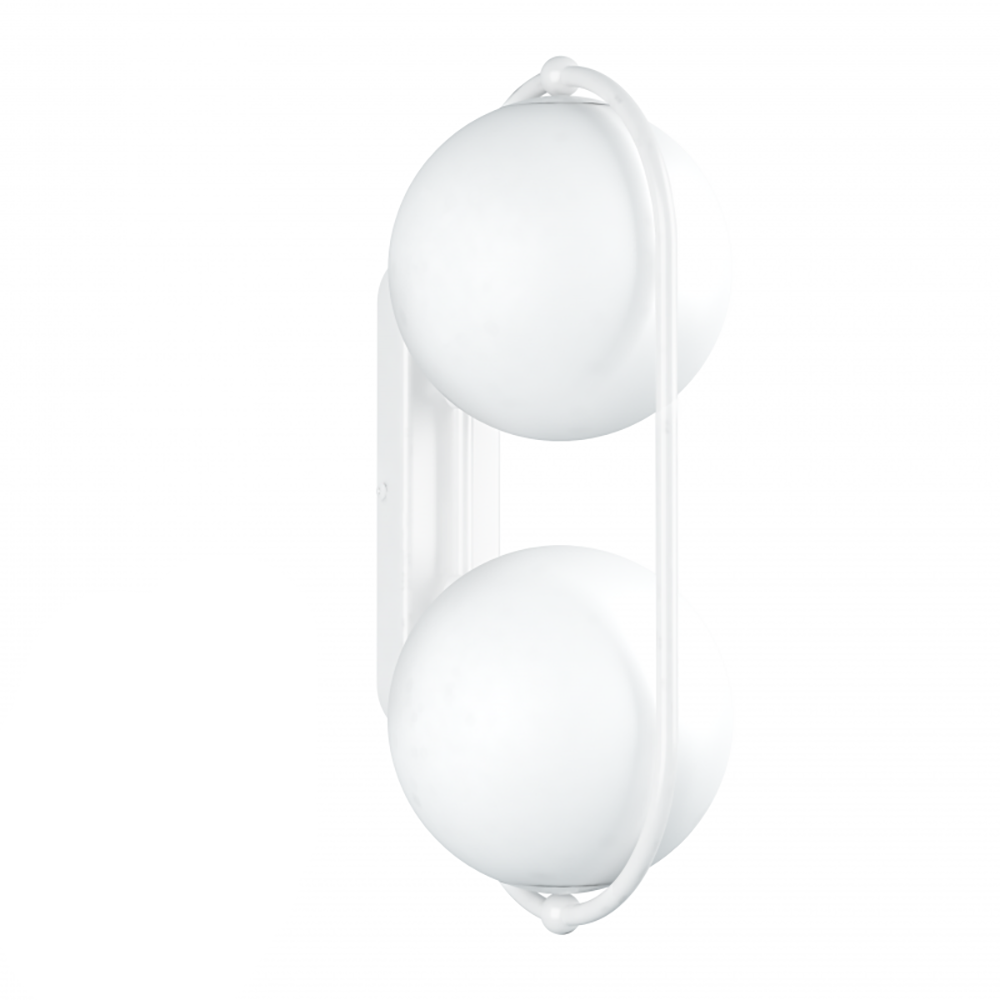 KOBAN E est une applique murale de la collection KOBAN, qui développe les principes du design minimaliste vers une forme plus expressive. La lampe comporte deux abat-jours sphériques en verre blanc laiteux, disposés verticalement de manière à conférer à l'ensemble une symétrie élégante et un équilibre optique. Chaque abat-jour a un diamètre de 15 cm et diffuse doucement la lumière pour créer une atmosphère agréable.