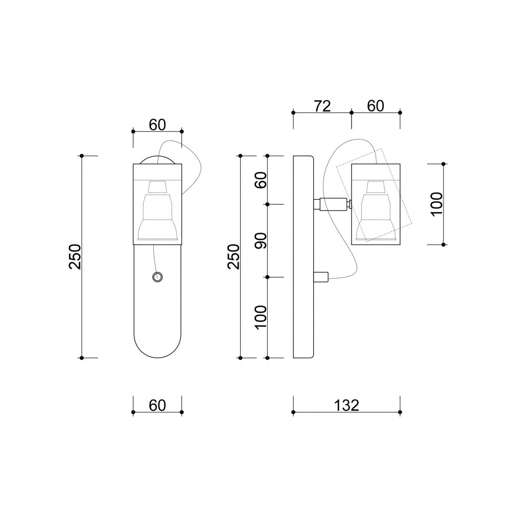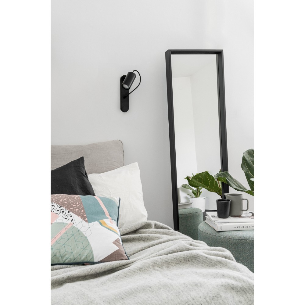 - applique murale, support mural - couleur noire (Jet Black RAL 9005) - matériau métal - longueur 13,2cm - largeur 6cm - hauteur 25cm - réflecteur sur pivot mobile - support mural peint en noir structurel - câble tressé en polyester noir - filetage GU10 - max 10W LED - IP20
