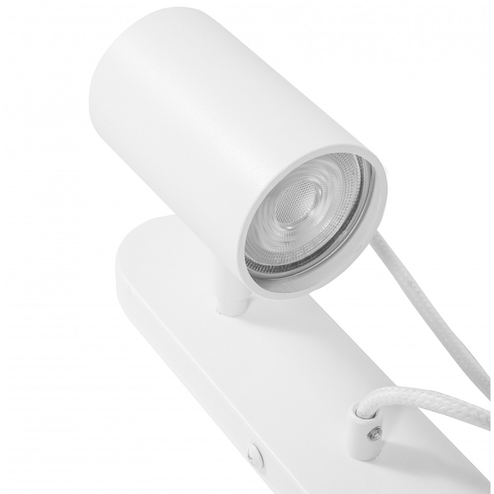 - applique murale, support mural - couleur blanc (Signal White RAL 9003) - matériau métal - longueur 13,2cm - largeur 6cm - hauteur 25cm - réflecteur sur pivot mobile - support mural peint en blanc structurel - câble polyester blanc tressé - filetage GU10 - max 10W LED - IP20