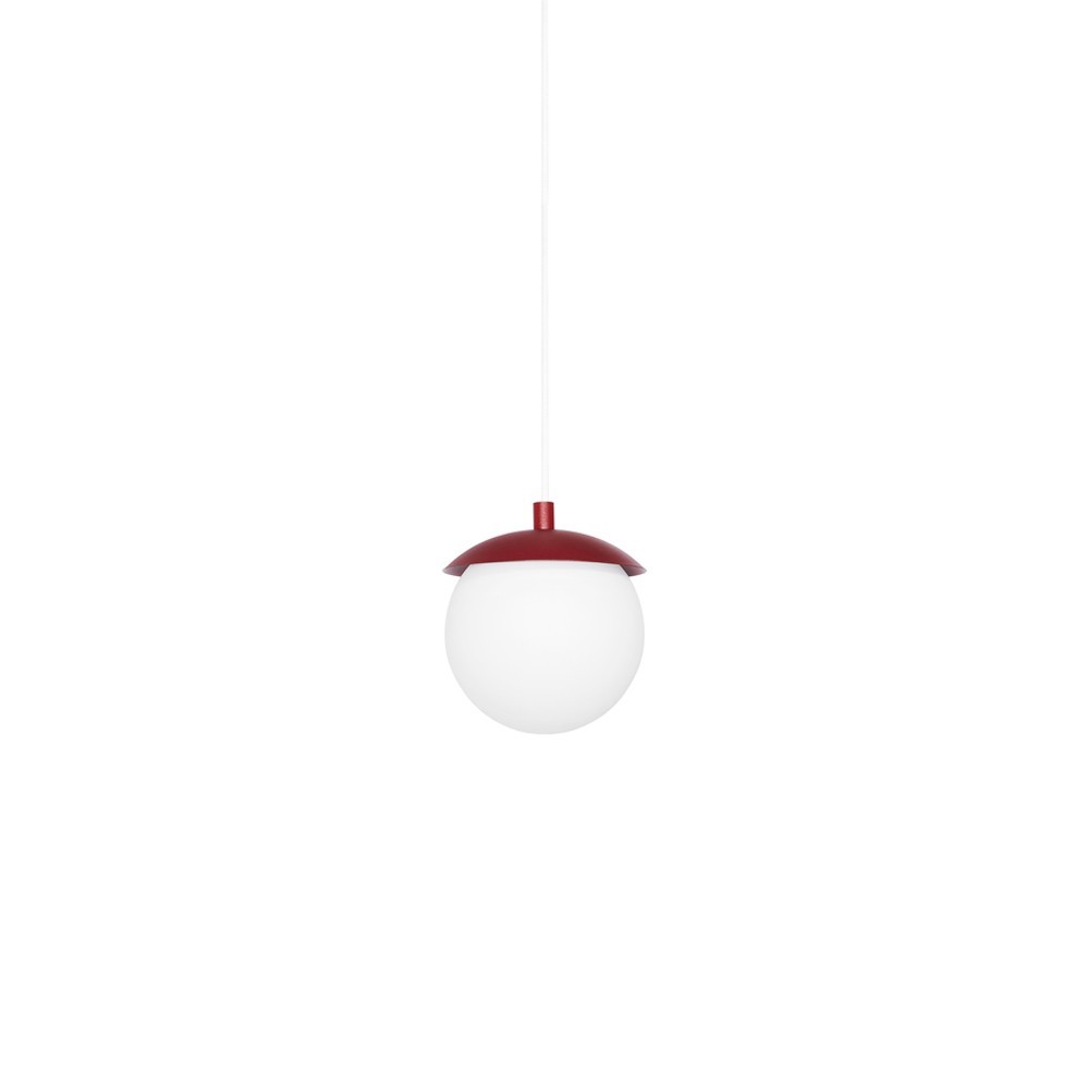 - plafonnier, lampe suspendue - couleur bordeaux (Purple Red RAL 3004) - matériau métal, verre - longueur 15cm - largeur 15cm - hauteur 15cm - longueur totale 130cm - diffuseur en verre blanc laiteux ⌀15cm - support laqué en bordeaux structurel - câble en polyester blanc tressé 112,5cm - filetage G9 - max 12W LED - IP20