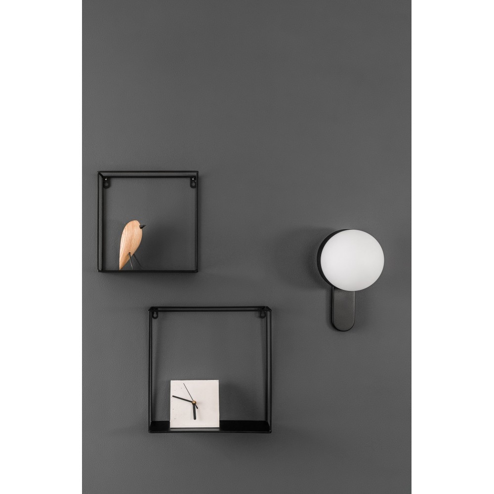 - applique murale, support mural - couleur noire (Jet Black RAL 9005) - matériau métal, verre - longueur 17,5cm - largeur 15cm - hauteur 26,5cm - diffuseur en verre blanc laiteux ⌀15cm - support structurel laqué noir - filetage G9 - max 12W LED - IP44