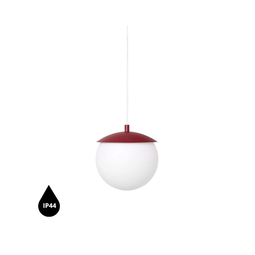 - plafonnier, lampe suspendue - couleur bordeaux (Purple Red RAL 9003) - matériau métal, verre - longueur 20cm - largeur 20cm - hauteur 20cm - longueur totale 135cm - diffuseur en verre blanc laiteux ⌀20cm - support laqué en bordeaux structurel - câble en polyester blanc tressé 112,5cm - filetage E27 - max 15W LED - IP44