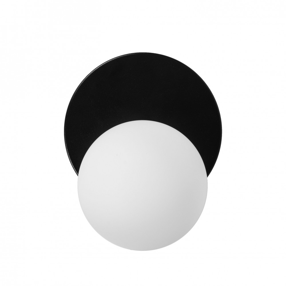 - applique murale / support mural - métal / verre - noir / blanc - hauteur 24cm - largeur 20cm - profondeur 18cm - diffuseur en verre de 15cm de diamètre en blanc mat - support mural peint en noir structurel - câble bifilaire 2 X 0.75mm2 - filetage G9 - max 12W