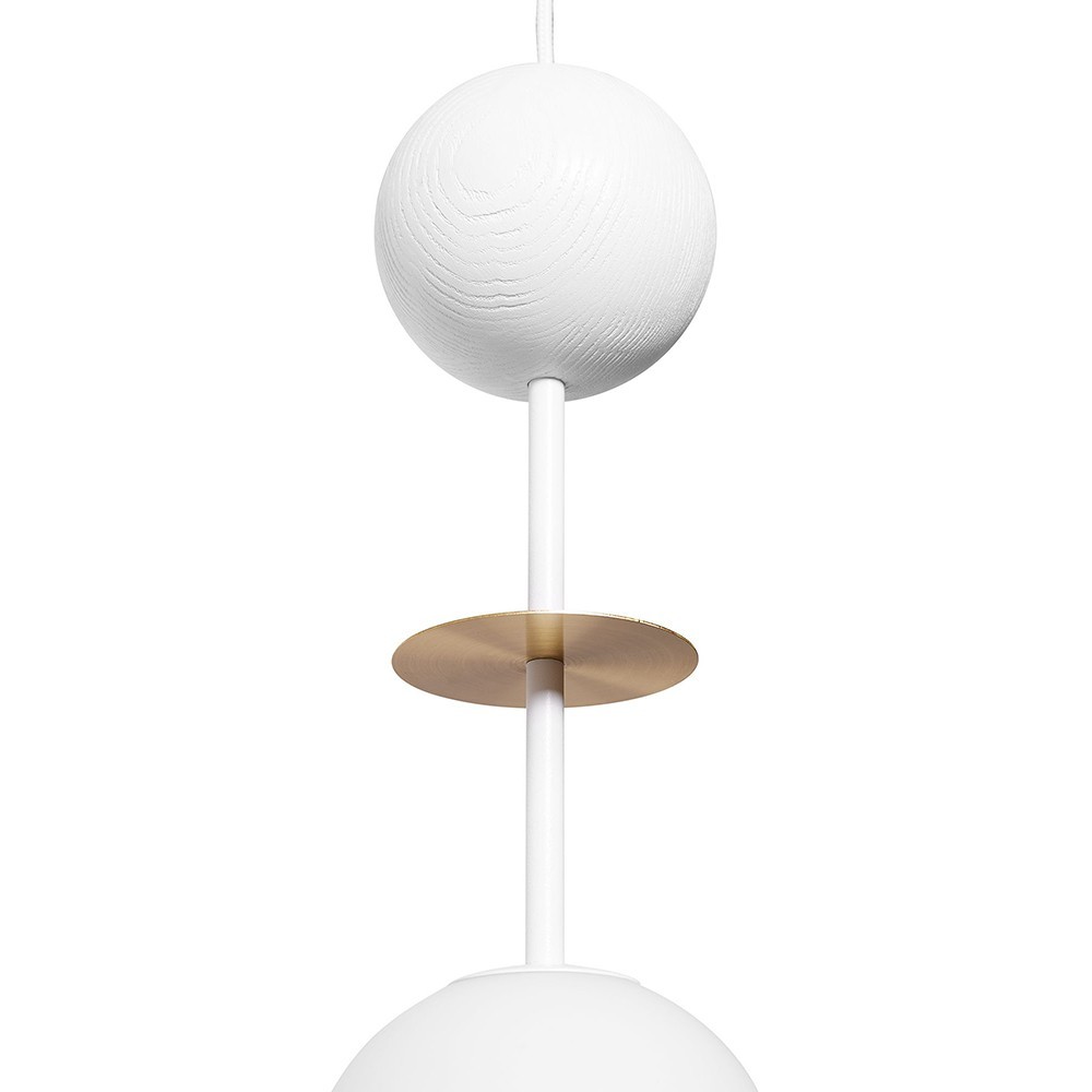 - lampe suspendue, plafonnier - blanc, laiton - matériau métal, bois, laiton, verre - hauteur 160cm - largeur 15cm - diffuseur en verre blanc ⌀15cm - élément en laiton ⌀10cm - globe en pierre de taille ⌀12cm - câble tressé en polyester blanc - support de plafond en métal blanc ⌀12cm - filetage G9 - max 12W - IP20
