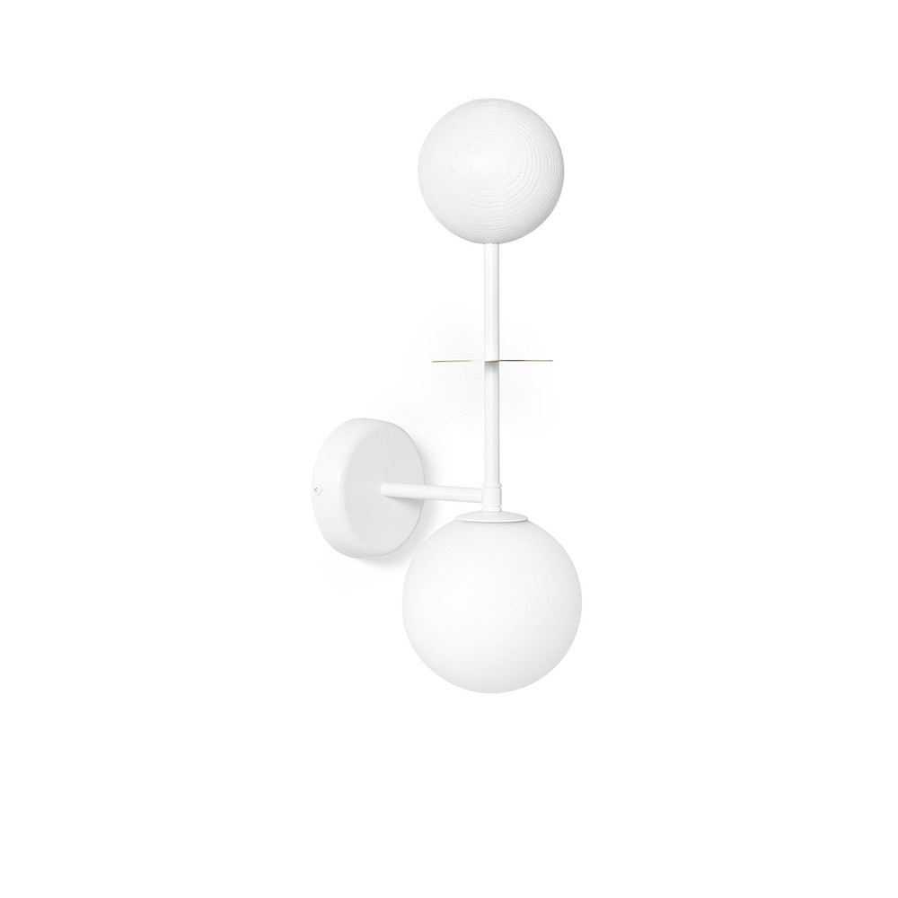 -applique mur ale- couleur : blanc, laiton - matériau : métal, bois, laiton, verre - hauteur 50cm - largeur 15cm - profondeur 22cm - abat-jour en verre blanc ⌀15cm - élément en laiton ⌀10cm - sphère en frêne ⌀12cm - grille en métal blanc ⌀12cm - filetage G9 - max. 12W - IP20 - source lumineuse incluse