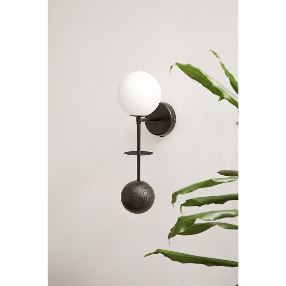 -applique mur ale- noir, blanc - matériau métal, bois, verre - hauteur 50cm - largeur 15cm - profondeur 22cm - diffuseur en verre blanc ⌀15cm - élément métallique ⌀10cm - boule de pierre de taille ⌀12cm - couvercle en métal noir ⌀12cm - filetage G9 - max 12W - IP20