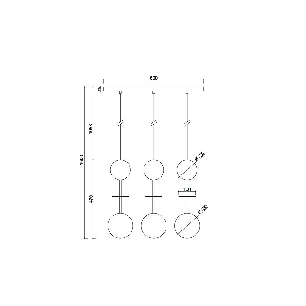 - lampe suspendue, plafonnier - noir, laiton - matériau métal, bois, laiton, verre - hauteur 160cm - largeur 60cm - 3x abat-jour en verre blanc ⌀15cm - 3x élément en laiton ⌀10cm - 3x sphère en cendres ⌀12cm - câble tressé en polyester noir 105cm - douille en métal noir 60cm - filetage G9 - max 3x12W - IP20