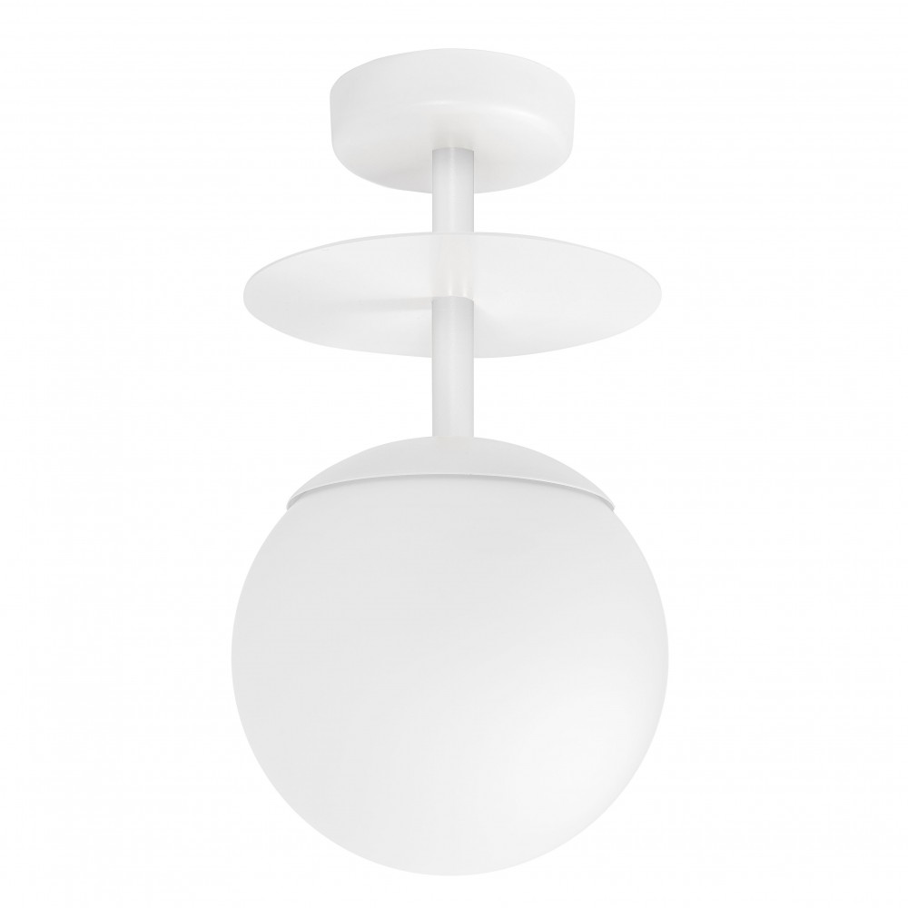 - plafonnier - métal / verre - blanc - hauteur 37cm - diamètre 20cm - diffuseur en verre blanc dépoli fi 20cm - grille de plafond structurelle laquée blanche fi 12cm - disque métallique fi 20cm - câble bifilaire 2 X 0.75mm2 - filetage E27 - max 15W