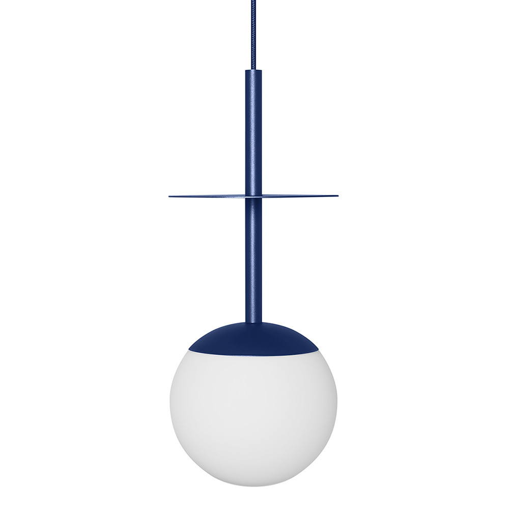 - plafonnier, lampe suspendue - matériau métal, verre - couleur bleu foncé (Sapphire Blue RAL 5003) - longueur 160 cm - longueur du câble 110 cm - diffuseur en verre blanc mat fi 20 cm - grille de plafond laquée bleu structurel fi 12 cm - disque en métal fi 20 cm - câble bifilaire 2 X 0.75mm2 en tresse polyester bleue - filetage E27 - max 15W - IP20