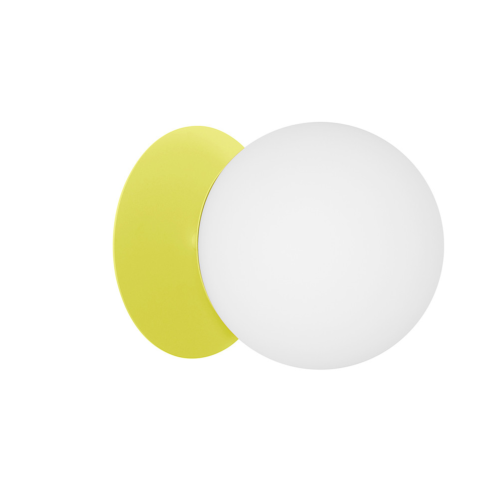 - applique murale, support mural, plafond - matériau métal, verre - couleur jaune (Sulfur Yellow RAL 1016) - longueur 26,6cm - largeur 20cm - hauteur 20cm - diffuseur en verre blanc mat fi 20cm - support mural peint en jaune structurel fi 14cm - disque en métal fi 20cm - câble bifilaire 2 X 0.75mm2 - filetage E27 - max 15W - IP44