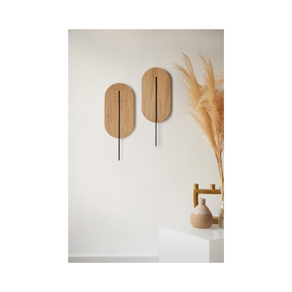 ROKKE WOOD est une applique qui représente un dialogue entre l'héritage de l'architecture moderniste et un regard neuf sur le design contemporain. Sa forme ovale et allongée s'inspire de la simplicité et de la fonctionnalité des concepts urbains d'avant-guerre de Gdynia, où l'esthétique était subordonnée à la logique de la forme. Dans cette version en bois naturel, le luminaire acquiert une tonalité organique - la lumière se reflète doucement sur sa surface, créant un jeu de clair-obscur agréable et nuancé.