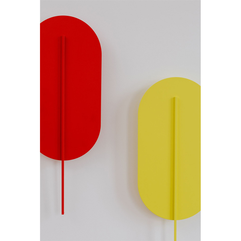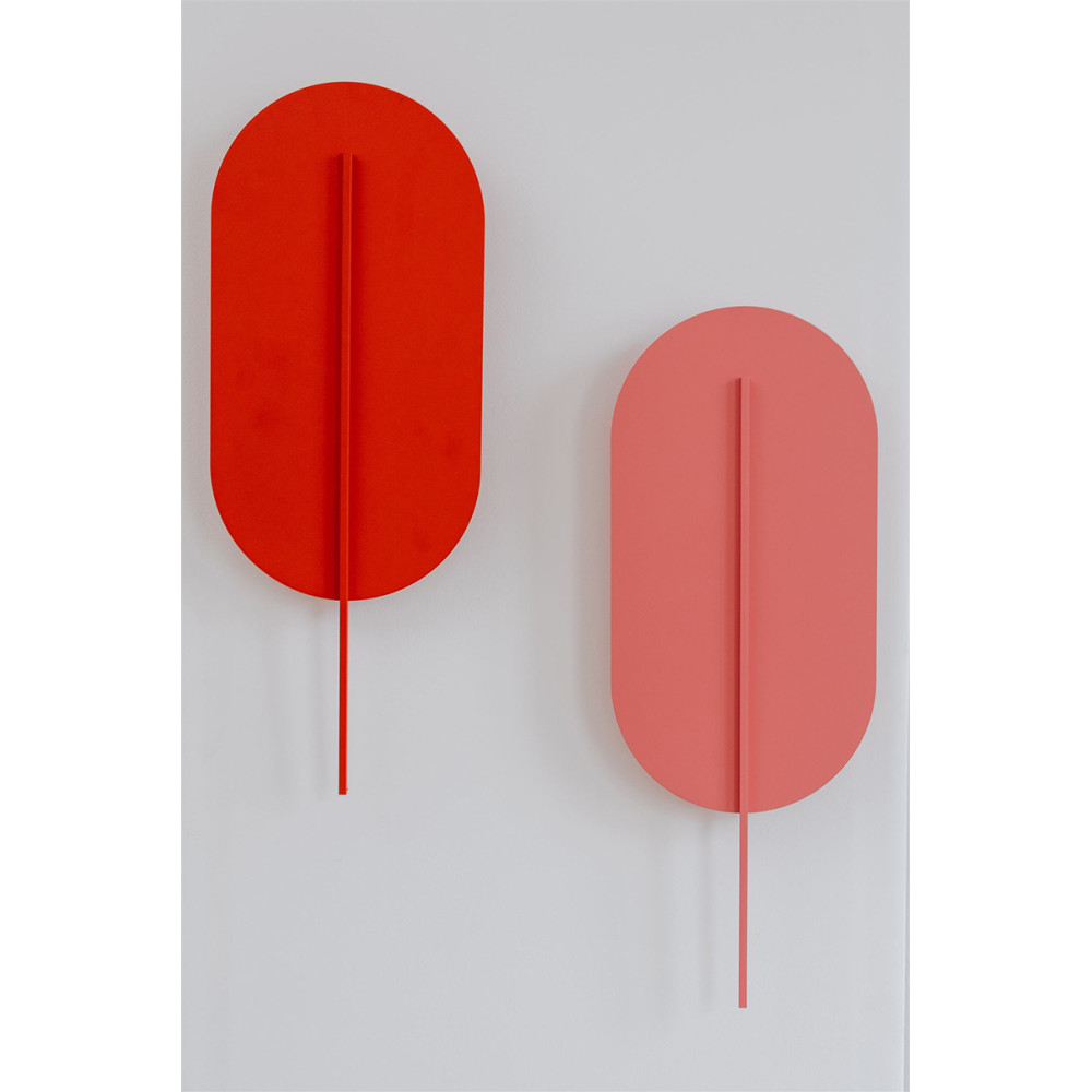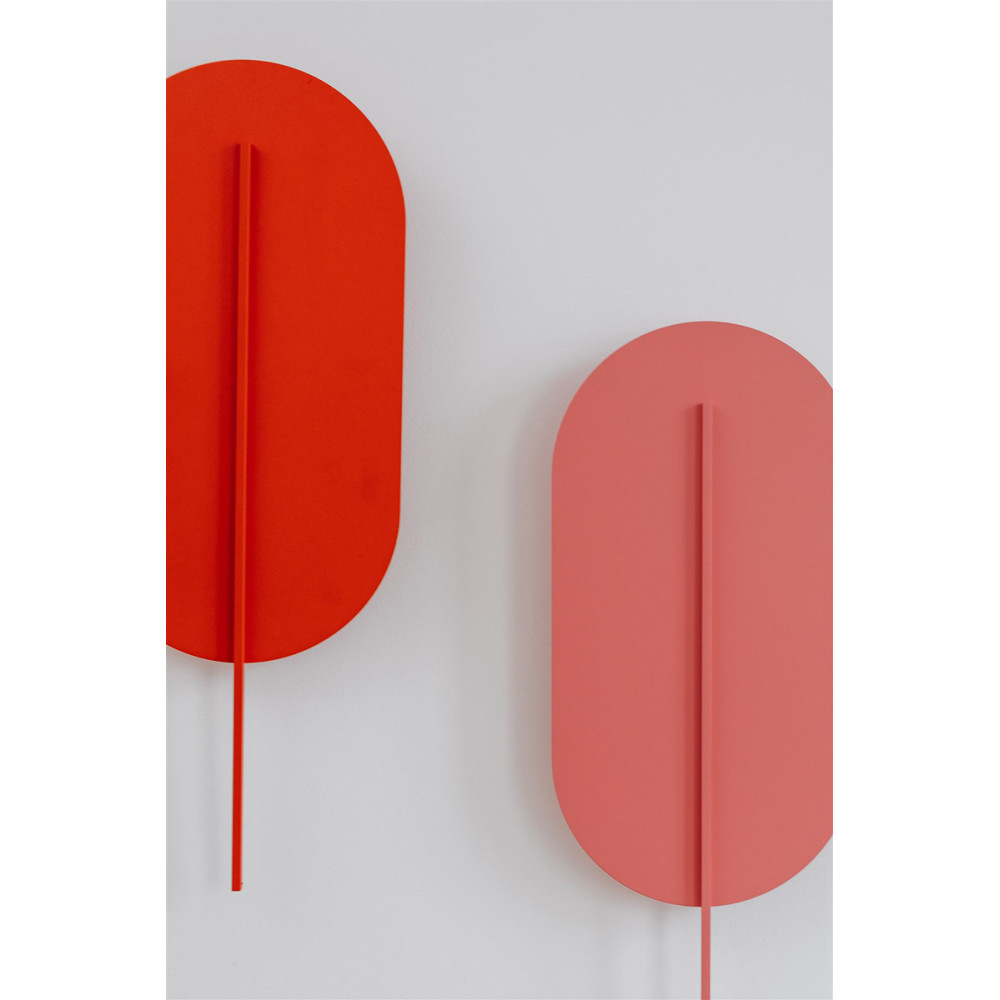 - applique murale - couleur rouge-orange (Vermillon RAL 2002) - matériau métal, laiton - longueur 3,8cm - largeur 21cm - hauteur 56,6cm - abat-jour rouge-orange avec élément décoratif (fixé avec des aimants au support mural) - support métallique blanc 8x8cm - filetage 2xG9 - max 2x12W - IP20