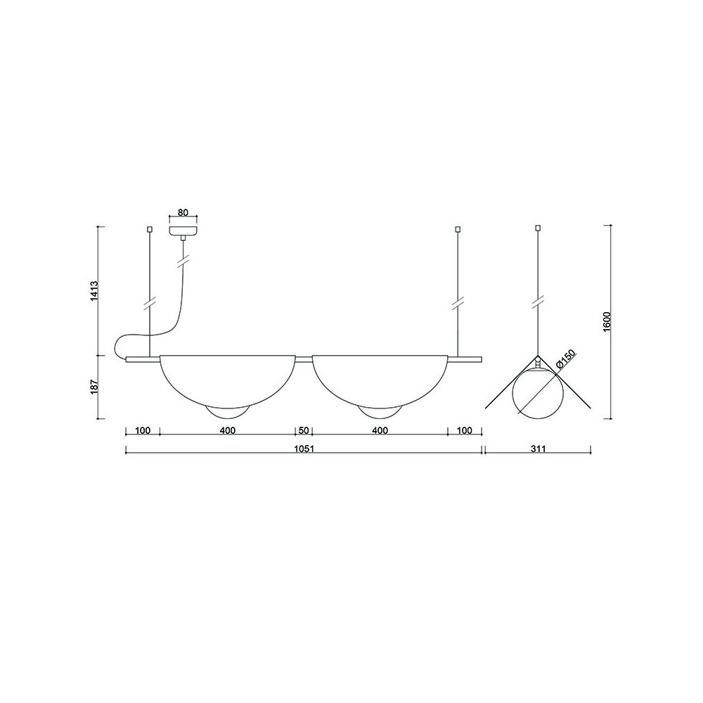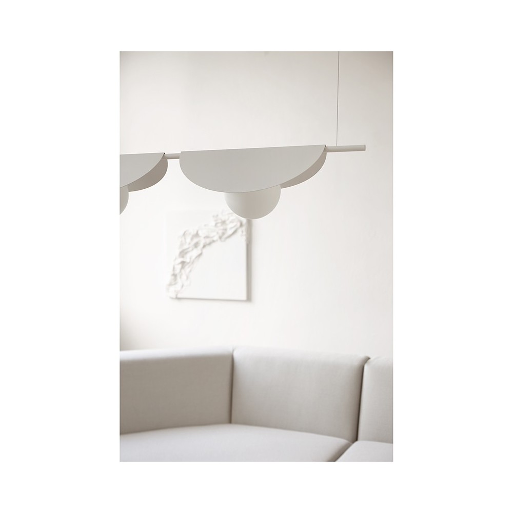 - plafonnier, lampe suspendue - blanc - matériau métal, verre - hauteur 160cm - largeur 105cm - profondeur 31cm - 2x abat-jour en verre blanc ⌀15cm - cadre métallique blanc - 2x fil d'acier...