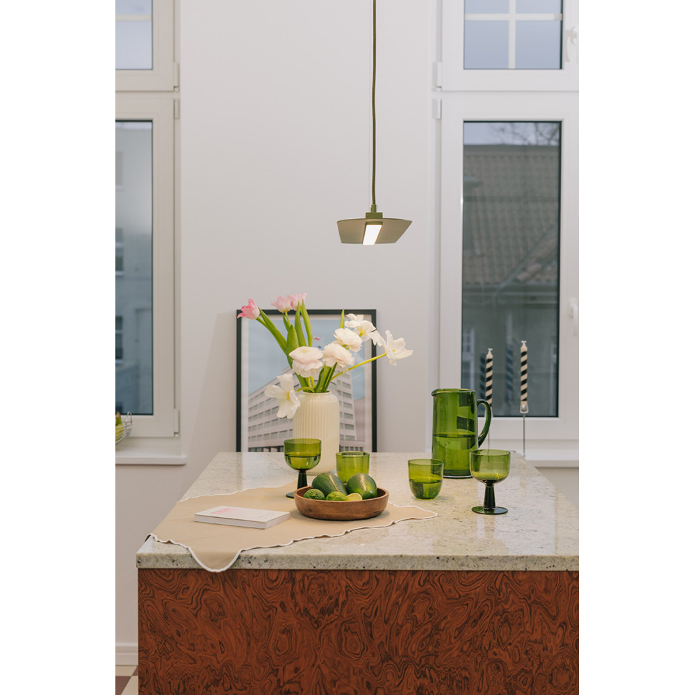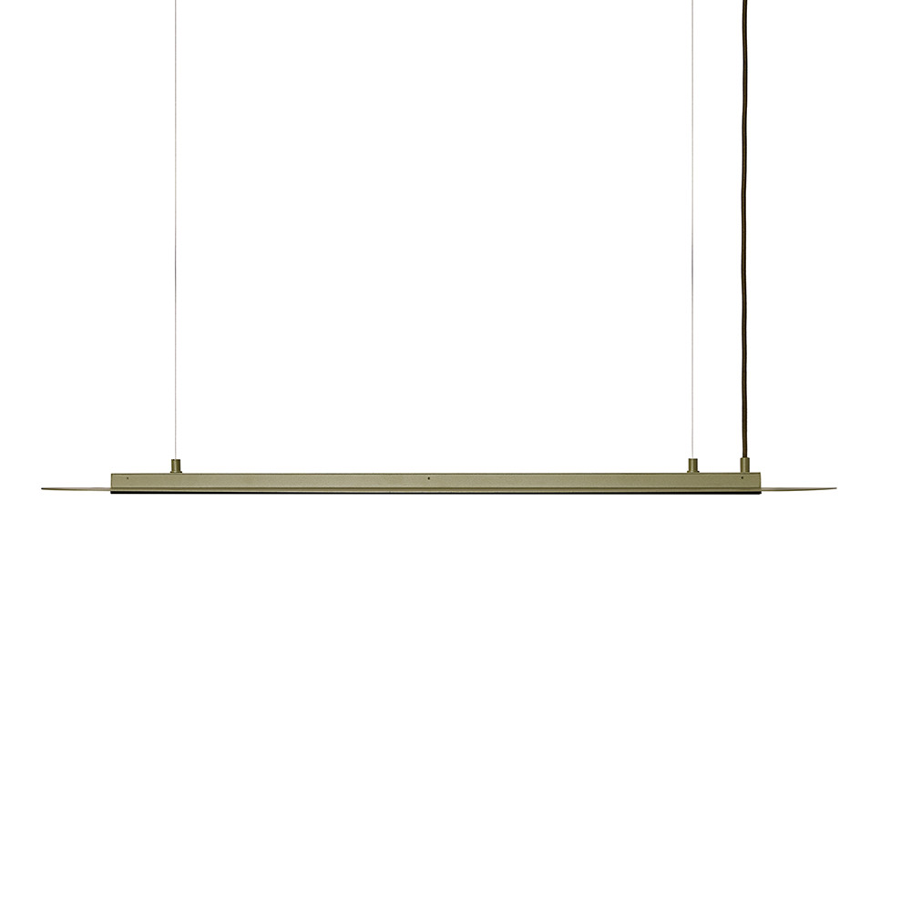 - plafonnier, lampe suspendue - couleur vert olive (Reed Green RAL 6013) - matériau métal - longueur 118,4cm - largeur 15,4cm - hauteur 5cm - longueur totale 150cm - câble tressé en polyester vert olive 180cm - 2x câble en acier 150cm - cache plafond en métal vert olive 25cm x 5,8cm - LED intégrées - puissance 24W - IP20