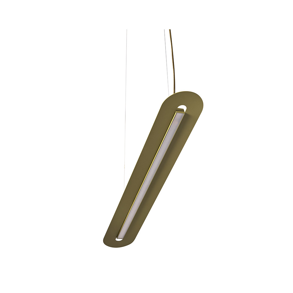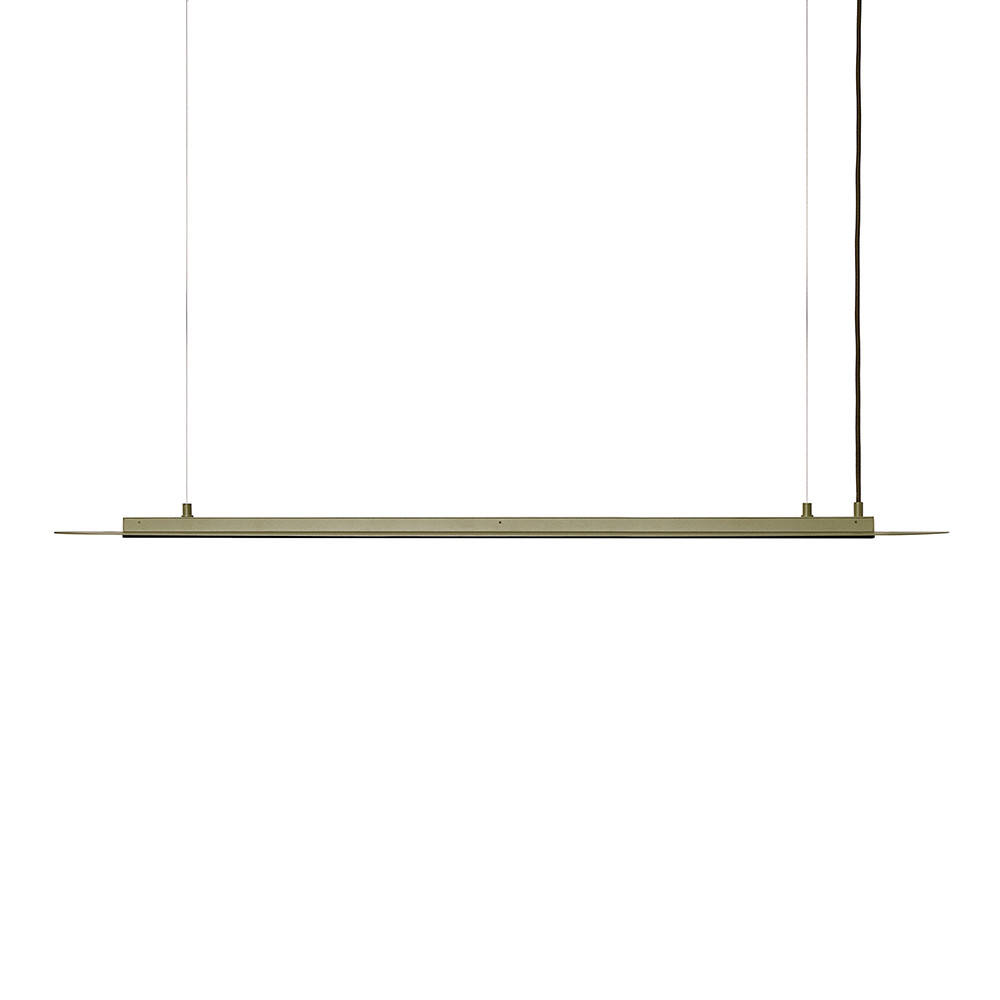- plafonnier, lampe suspendue - couleur vert olive (Reed Green RAL 6013) - matériau métal - longueur 138,4cm - largeur 15,4cm - hauteur 5cm - longueur totale 150cm - câble tressé en polyester vert olive 180cm - 2x câble en acier 150cm - grille de plafond en métal vert olive 25cm x 5,8cm - LED intégrée - puissance 28,8W - IP20