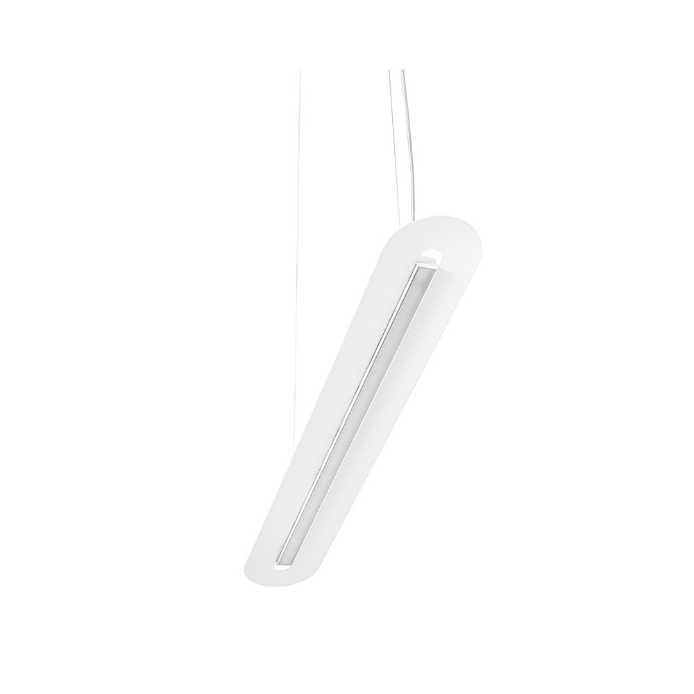 Le corps de la lampe est en métal dans les couleurs de la palette UMMO : blanc RAL 9003, noir RAL 9005, rouge-orange RAL 2002, olive RAL 6013, ce qui lui confère un caractère moderne et universel. La lampe est équipée d'une source lumineuse LED intégrée de 28,8 W, disponible en deux températures de couleur : 3000K ou 4000K. Cela vous permet d'adapter l'éclairage à vos besoins et préférences individuels. Les dimensions de la lampe sont les suivantes 138,4 x 15,4 x 5 cm. Elle est suspendue à de fins câbles d'acier, ce qui accentue encore son caractère léger et fin. La longueur totale de la suspension est de 150 cm, ce qui permet de l'utiliser dans différents espaces.