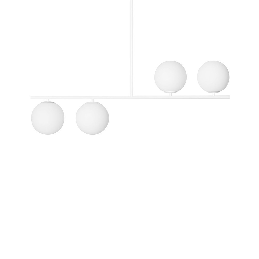 - lampe suspendue, plafonnier - taille M - couleur blanc - matériau métal, verre - hauteur 82cm - largeur 90cm - profondeur 15cm - 4x abat-jour en verre blanc ⌀15cm - cadre métallique blanc (hauteur 60cm, largeur 90cm ) - cache de protection blanc ⌀12cm - filetage G9 - max 4x12W - IP20