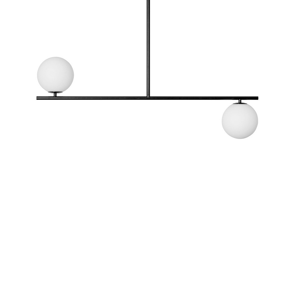 - lampe suspendue, plafonnier - taille M - noir, blanc - matériau métal, verre - hauteur 82cm - largeur 90cm - profondeur 15cm - 2x abat-jour en verre blanc ⌀15cm - cadre en métal noir (hauteur 60cm, largeur 90cm ) - cadre noir ⌀12cm - filetage G9 - max 2x12W - ...