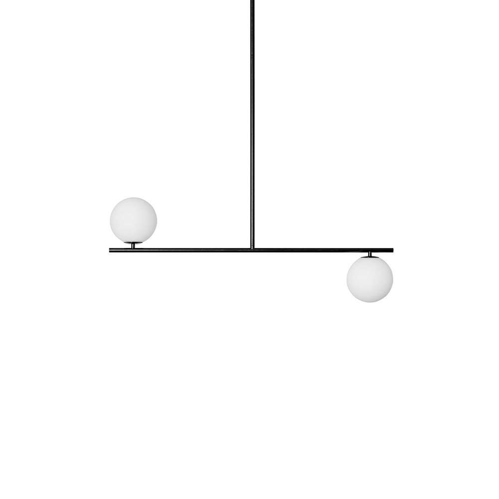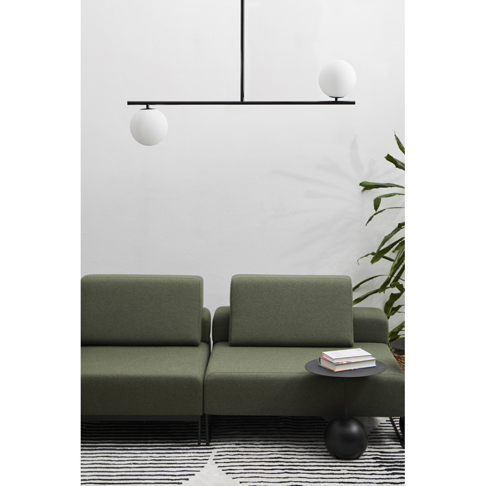 - lampe suspendue, plafonnier - taille XL - noir, blanc - matériau métal, verre - hauteur 142cm - largeur 90cm - profondeur 15cm - 2x abat-jour en verre blanc ⌀15cm - cadre en métal noir (hauteur 120cm, largeur 90cm) - cadre noir ⌀12cm - filetage G9 - max 2x12W -...