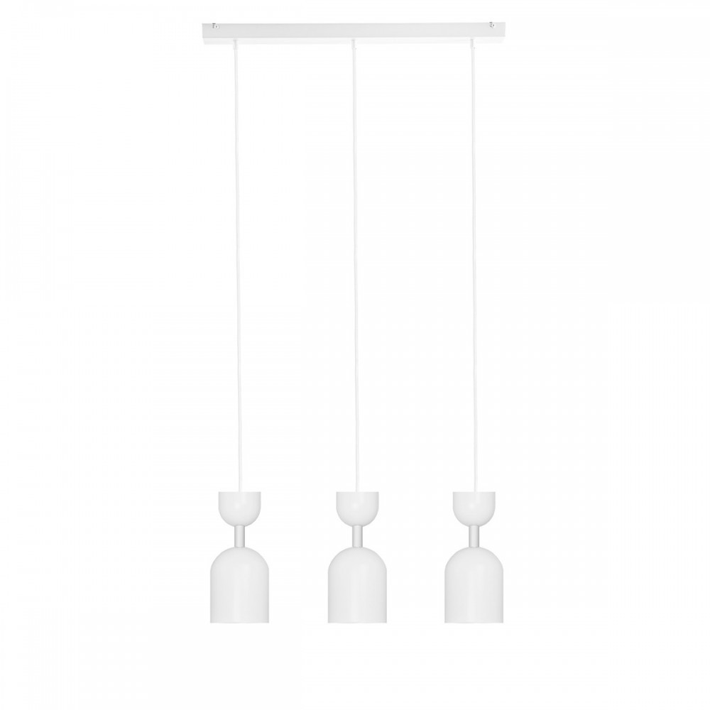 -lampe suspendue triple -métal - blanc - longueur de la lampe 130cm- largeur 60cm - 3x abat-jour en métal en blanc structurel fi 11cm - garniture de plafond peinte en blanc structurel 60cm - câble bifilaire 2 X 0.75mm2 en tresse polyester blanche, longueur 100cm - fil GU10 - max 3x10W