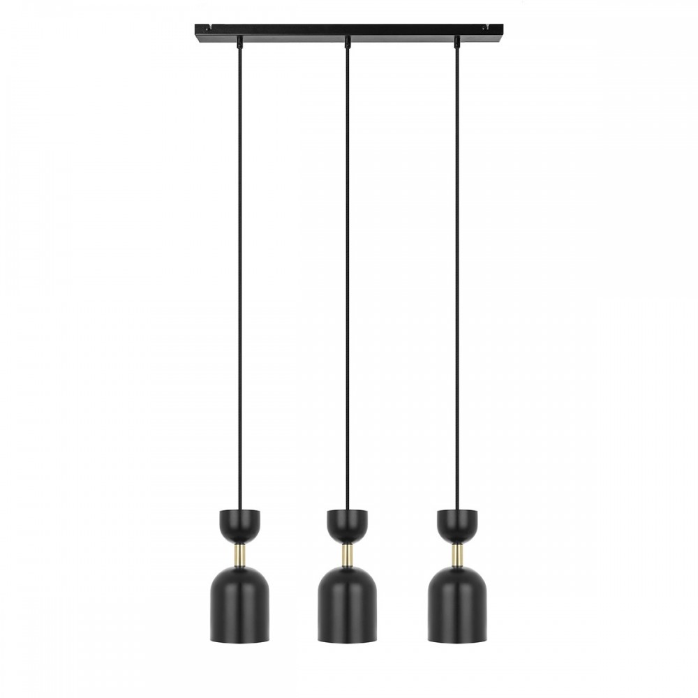 -lampe suspendue triple -métal - noir / laiton - longueur de la lampe 130cm- largeur 60cm - 3x abat-jour en métal en noir structurel fi 11cm - tube décoratif en laiton - garniture de plafond peinte en noir structurel 60cm - câble bifilaire 2 X 0.75mm2 en tresse de polyester noir - longueur 100cm - fil GU10 - max 3x10W