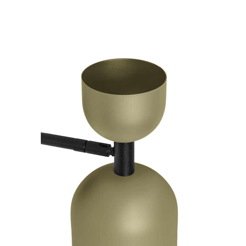- applique murale, support mural - couleur vert olive (Reed Green RAL 6013), noir (Jet Black RAL 9005) - matériau métal - longueur 19cm - largeur 11cm - hauteur 23,3cm - abat-jour structurel en métal fi 11cm - support mural structurel laqué noir fi 8cm - câble bifilaire 2 X 0.75mm2 - filetage GU10 - max 10W