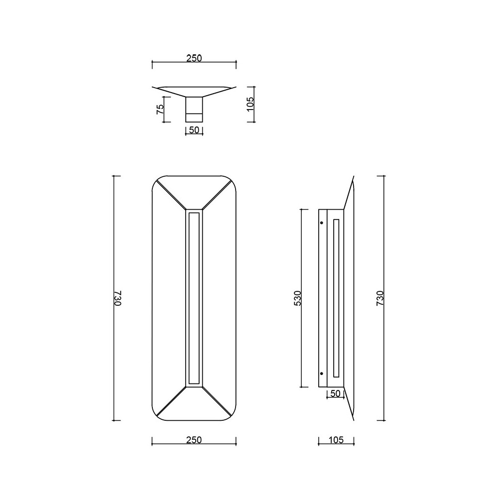 - applique murale, support mural - couleur noire - matériau métal, aluminium - hauteur 73cm - largeur 25cm - profondeur 10,5cm - cadre de plafond en métal noir 53x5cm - alimentation 24V - LED intégrée - puissance 10W - CRI 90 - IP20
