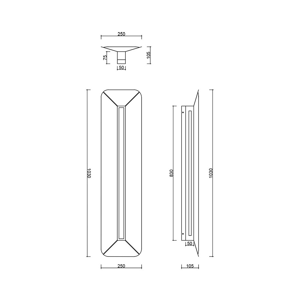 - applique murale, support mural - couleur noire (Jet Black RAL 9005) - matériau métal, aluminium - hauteur 103cm - largeur 25cm - profondeur 10,5cm - cache plafond en métal noir 83x5cm - alimentation 24V - LED intégrée - puissance 17W - CRI 90 - IP20